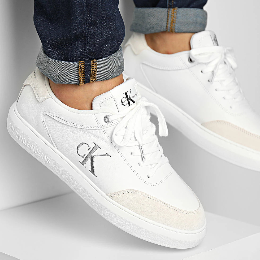 Le moins cher 👏 Baskets Casual Cupsole Laceup Low Mono YM0YM00496 Triple White de Calvin Klein 🛒