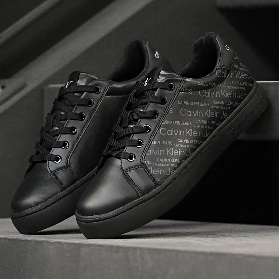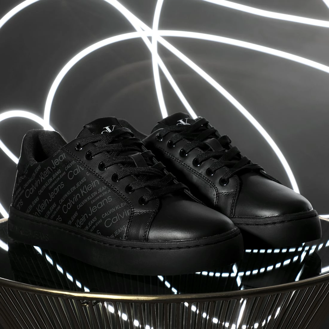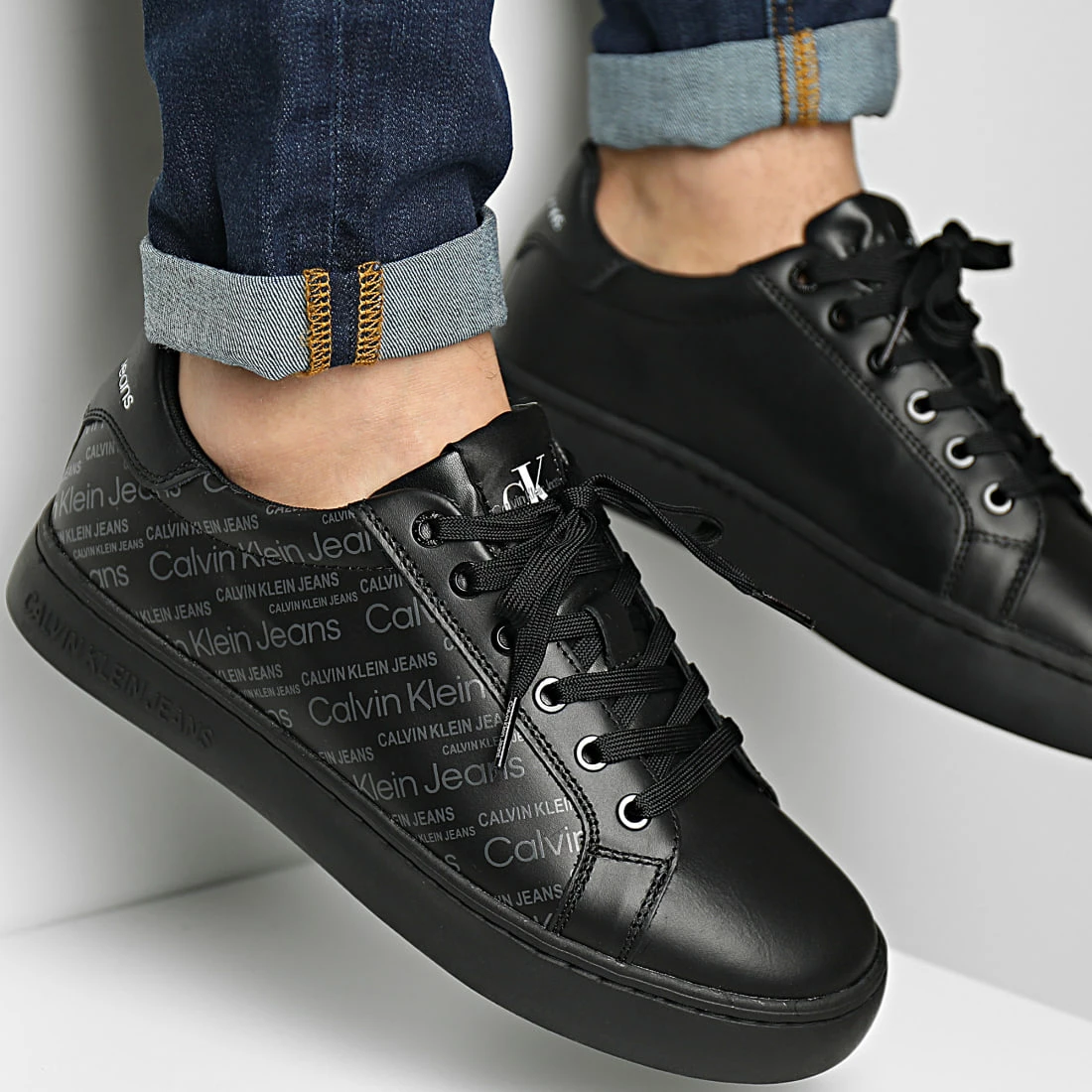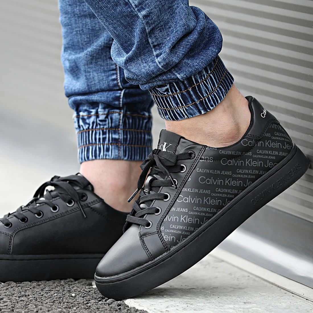 • Baskets tendance en cuir enduit véritable imprimées motif Calvin Klein Jeans