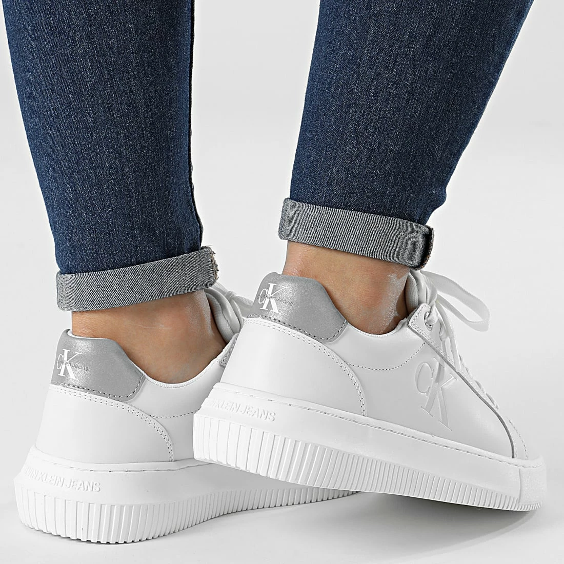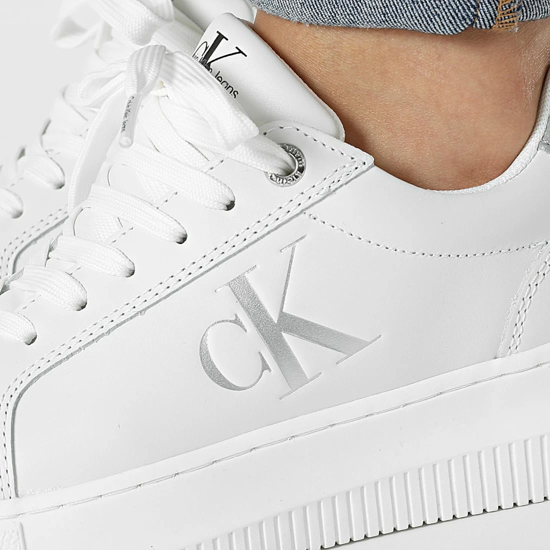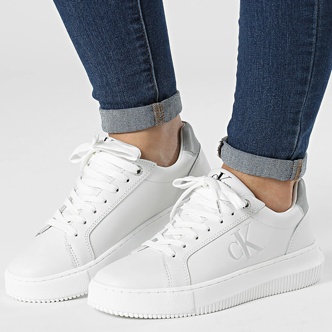 • Baskets casual tendance en cuir avec logo Calvin Klein Jeans argenté