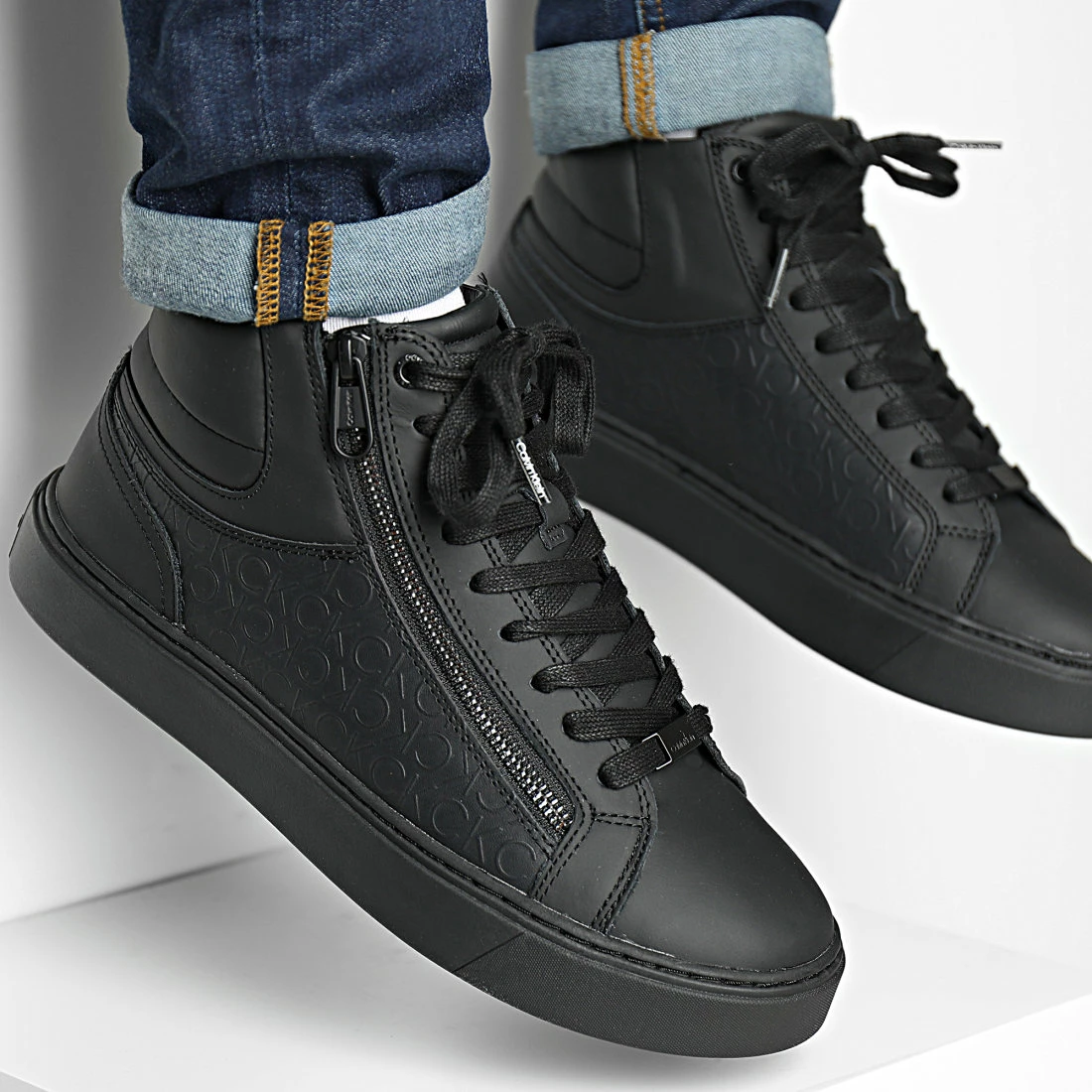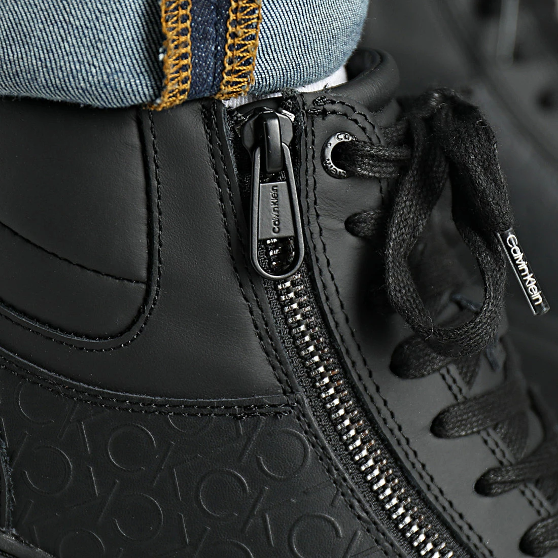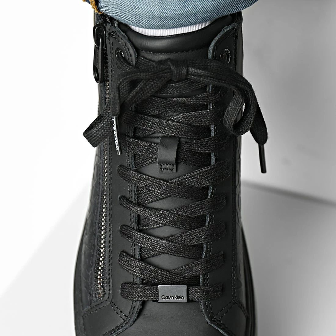 • Baskets montantes en cuir embossées motif Calvin Klein