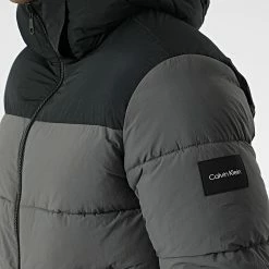 Tout neuf ❤️ Doudoune Capuche Crinkle Nylon Color 0337 Gris Noir de Calvin Klein 🌟