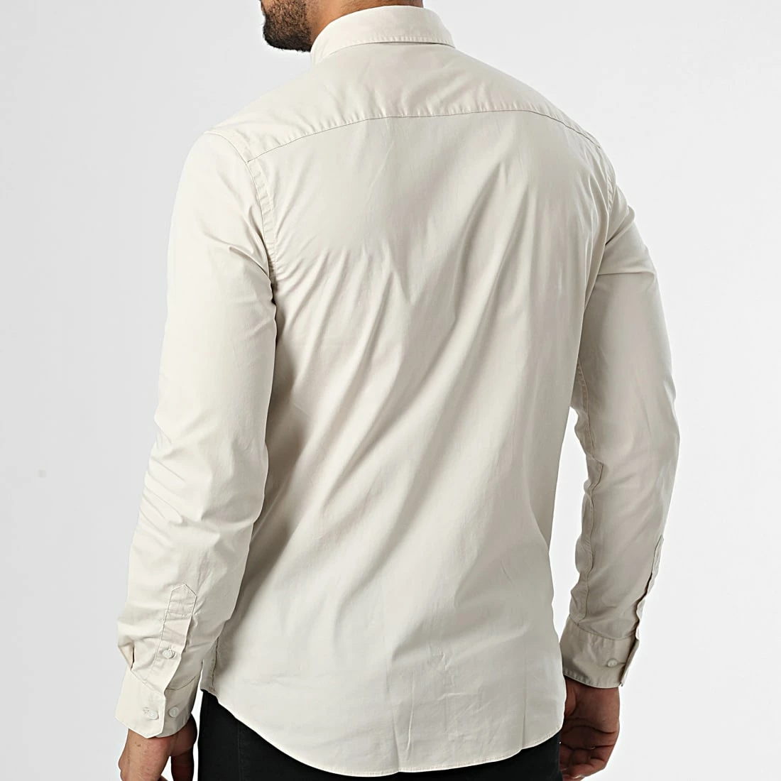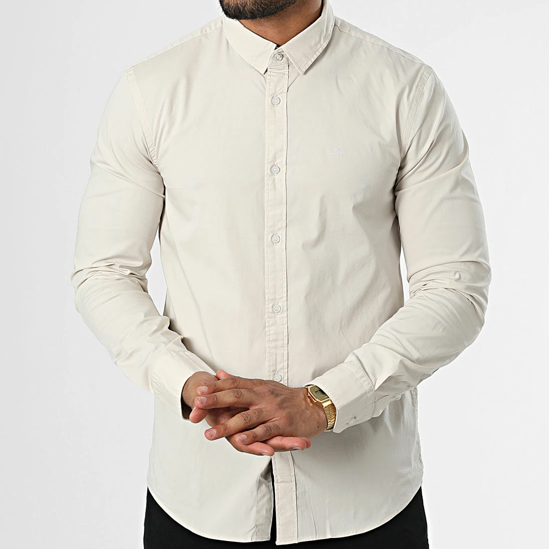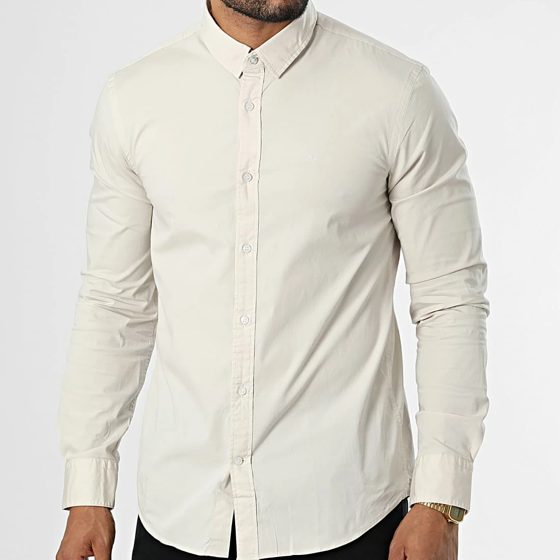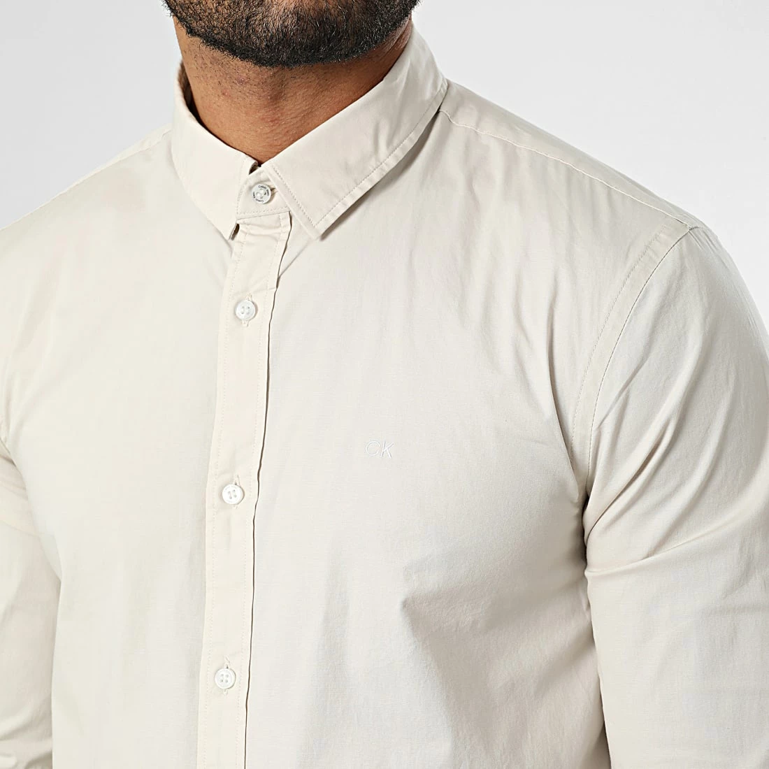 Promo 😍 Chemise Manches Longues Stretch Poplin 0856 Beige de Calvin Klein 🎉