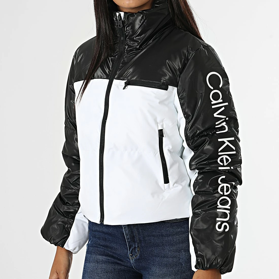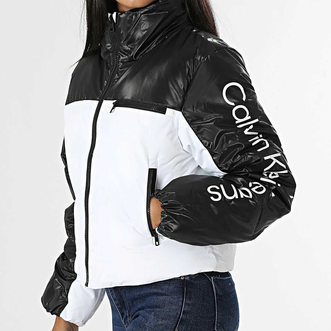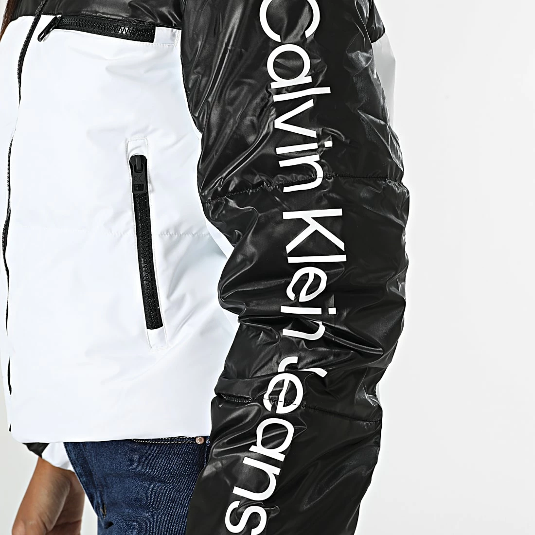 • Doudoune chaude bicolore et bi-matière avec visuel Calvin Klein Jeans imprimé sur la manche gauche