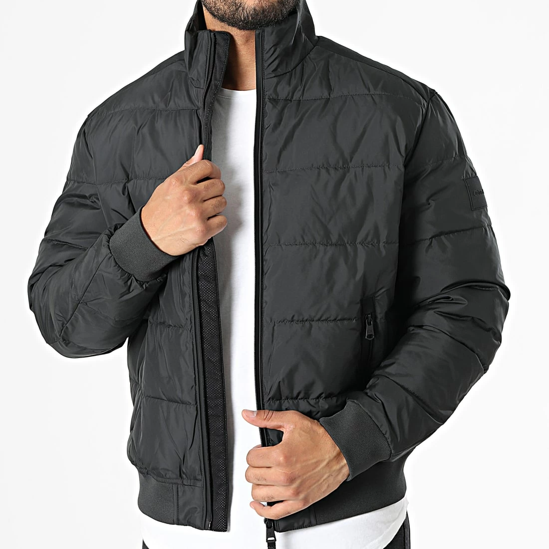 • Doudoune chaude tendance avec patch Clavin Klein brodé à l’épaule