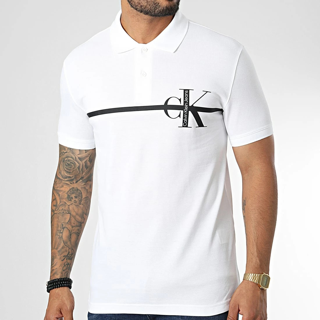 • Polo manches courtes imprimé visuel Calvin Klein Jeans sur la poitrine