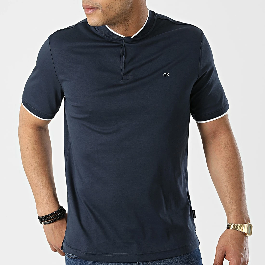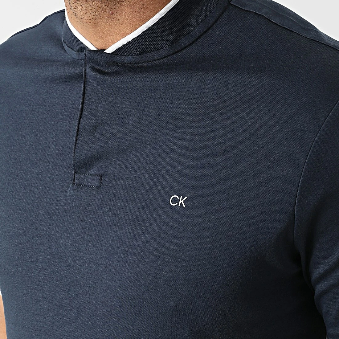 • Polo manches courtes en coton stretch appliqué CK sur la poitrine