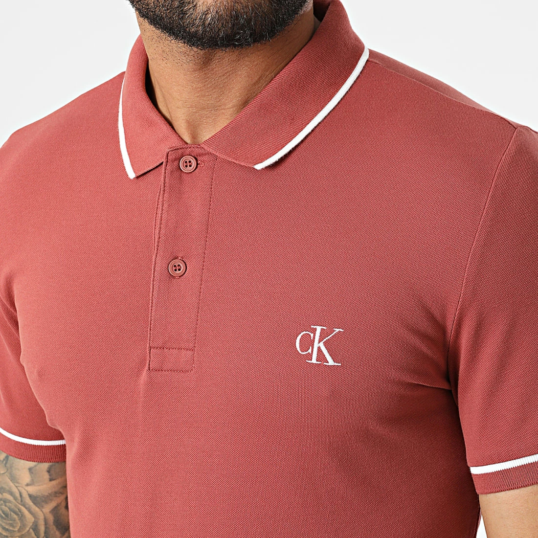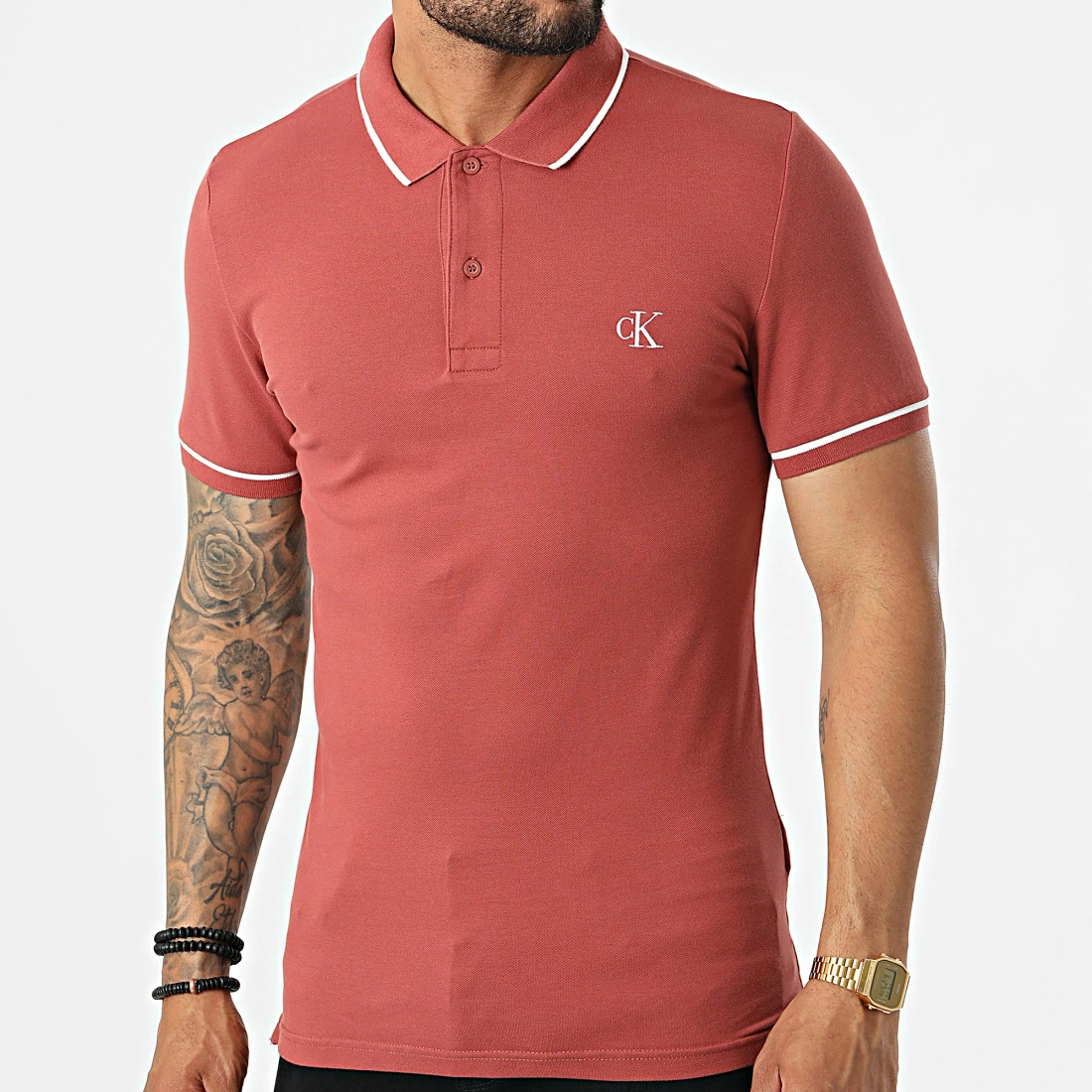 • Polo manches courtes en coton stretch brodé monogramme Calvin Klein Jeans sur la poitrine