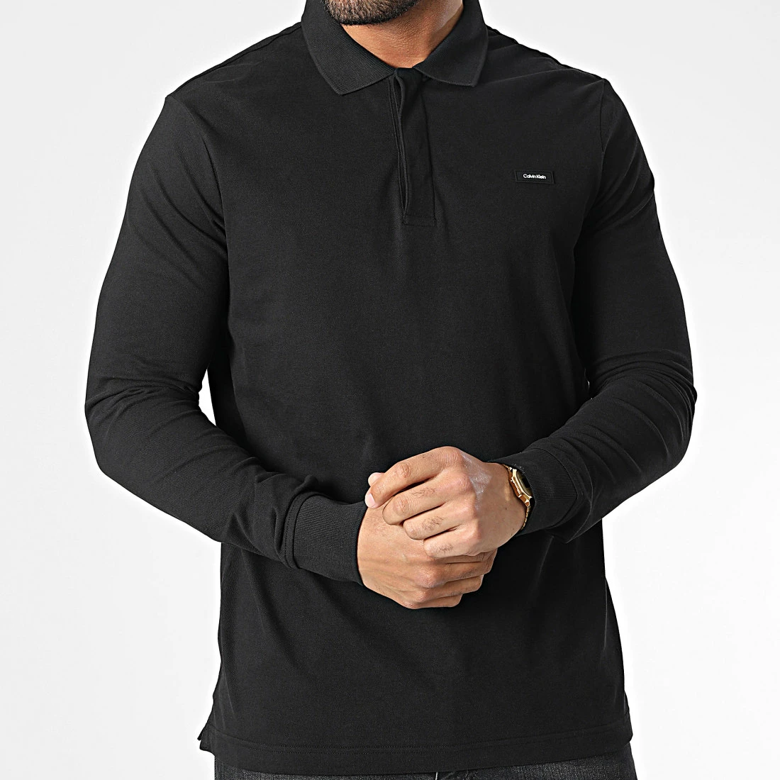 • Polo à manches longues élégant tendance avec patch Calvin Klein brodé