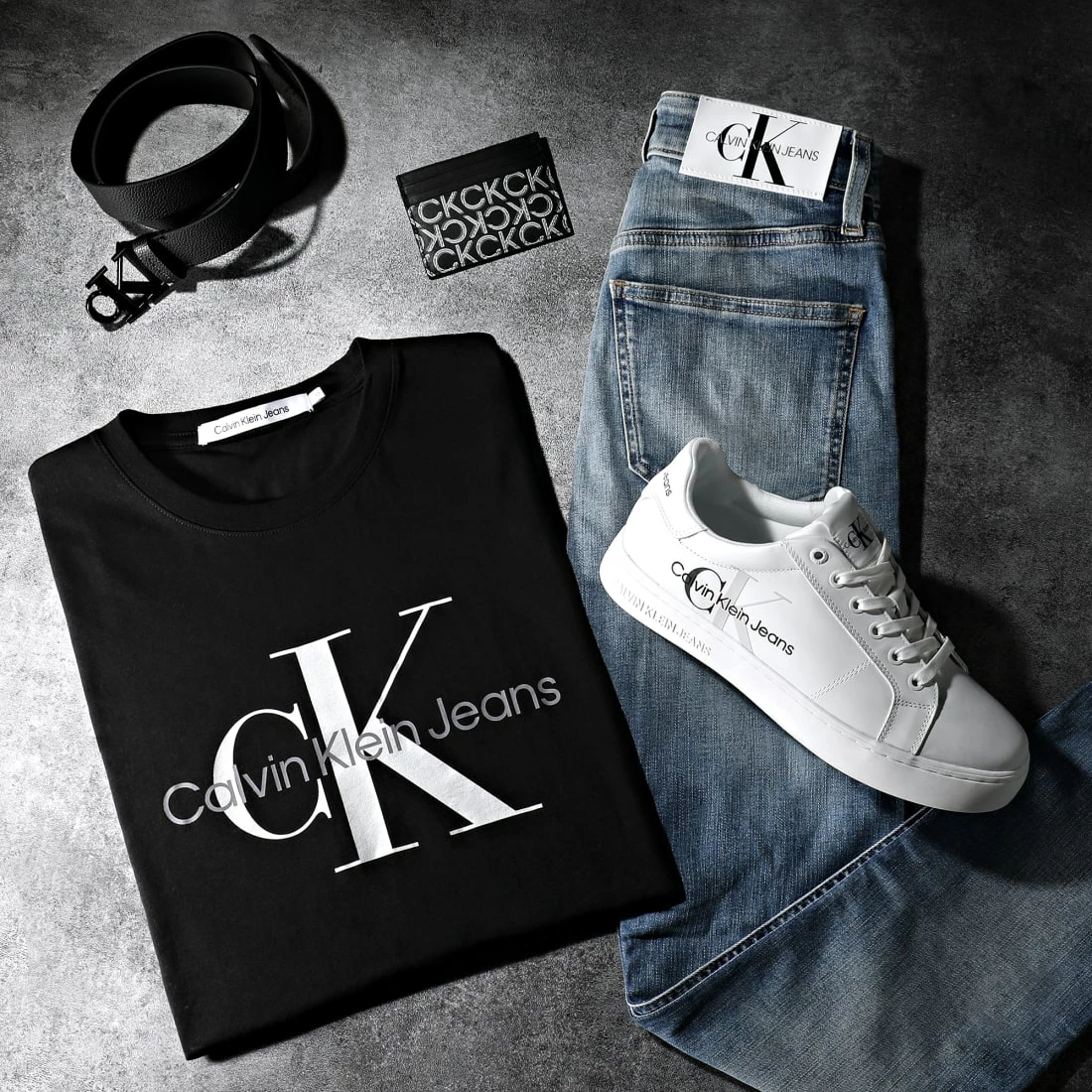 • Porte-cartes élégant en cuir véritable imprimé CK