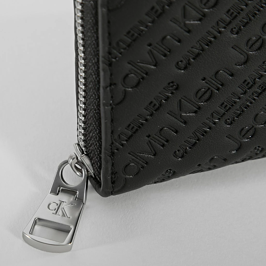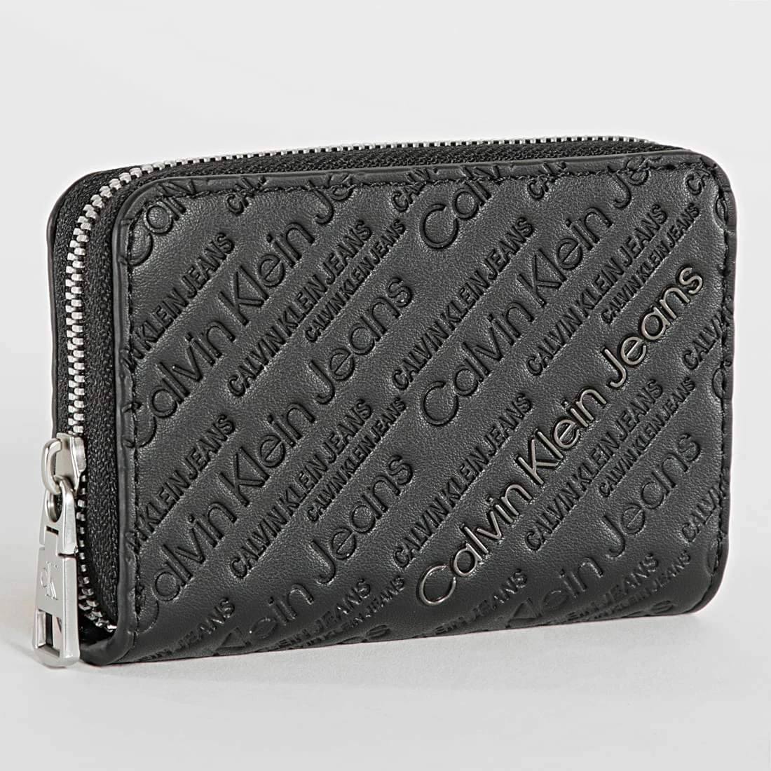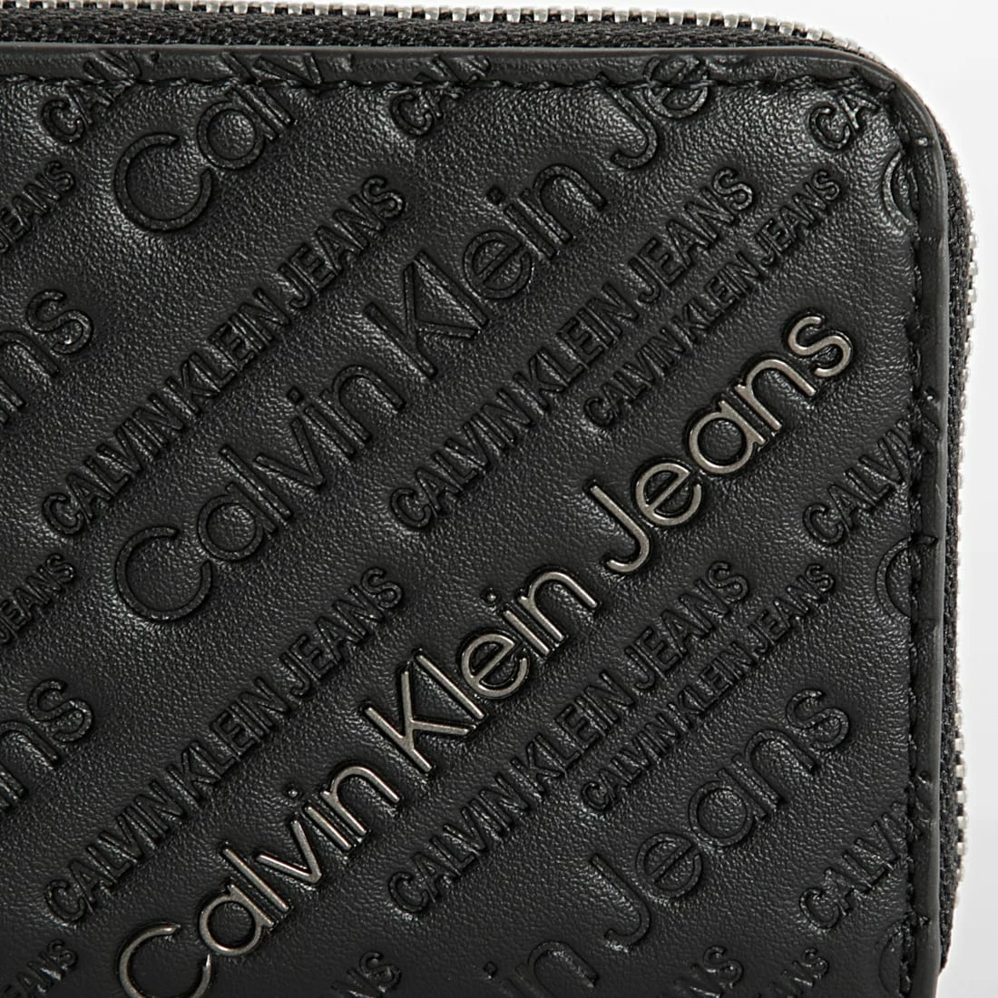 • Portefeuille élégant en cuir véritable gravé Calvin Klein Jeans all over