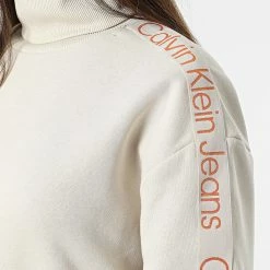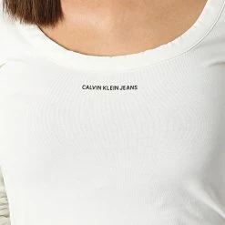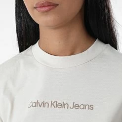Grosses soldes ✔️ Tee 👕 Shirt Manches Longues Femme Micro Branding 7656 Beige de Calvin Klein 🥰