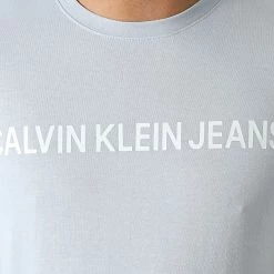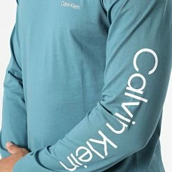 De gros 😀 Tee 👕 Shirt Manches Longues Sleeve Placement Logo 9737 Bleu Clair de Calvin Klein ✨