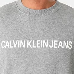 Meilleure affaire 😍 Sweat Crewneck Basic Institutional Logo 7757 Gris Chiné de Calvin Klein 🥰