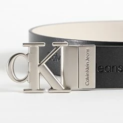 Le moins cher 🔥 Ceinture Femme Réversible Round Mono Plaque 0154 Noir Beige de Calvin Klein 🌟