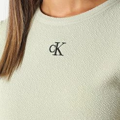Meilleure vente 😉 Tee 👚 Shirt Femme Col V Monogram Logo Slim 9138 Vert Kaki de Calvin Klein 🔥