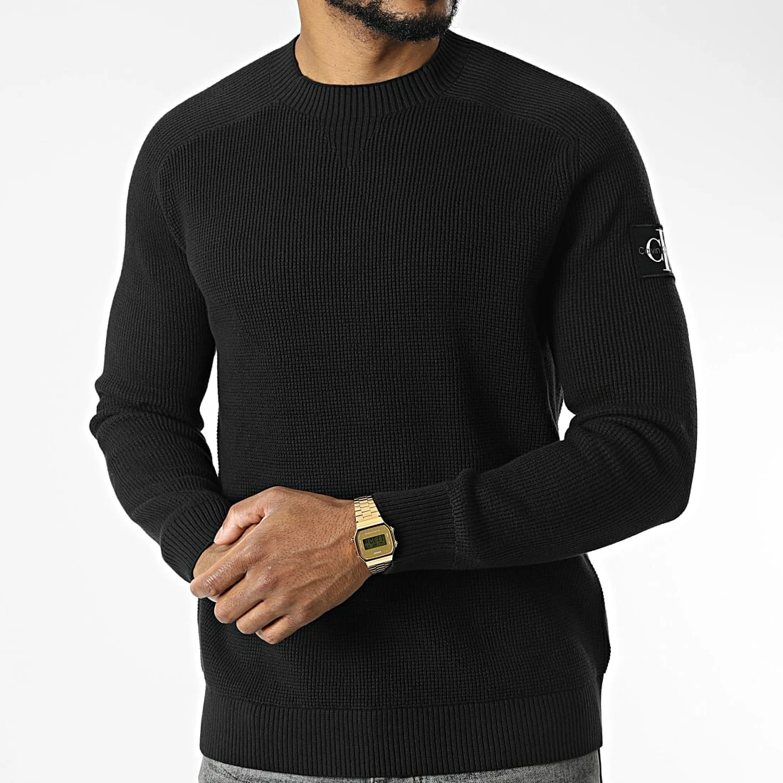 • Pull en maille avec patch Calvin Klein Jeans sur la manche