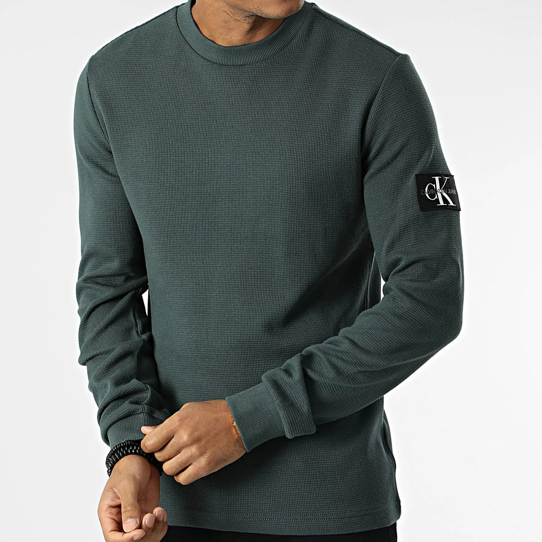 • Pull confortable essentiel tendance avec patch Calvin Klein Jeans brodé