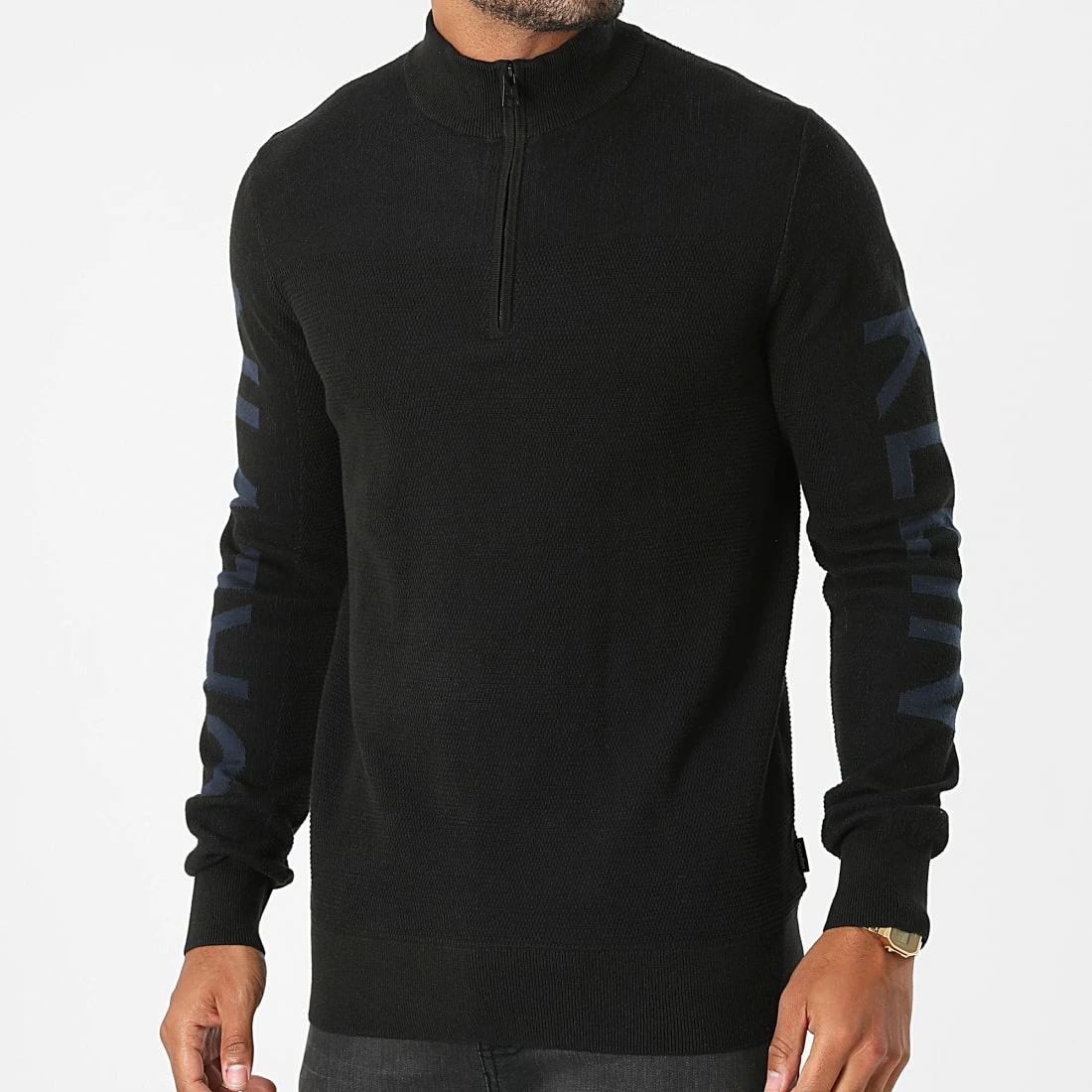 • Pull uni avec col montant zippé et vicuel Calvin Klein brodé aux manches