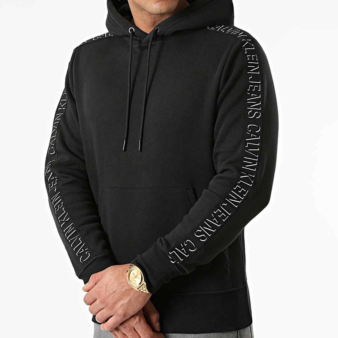 • Sweat capuche brodé bandes Calvin Klein Jeans sur les manches