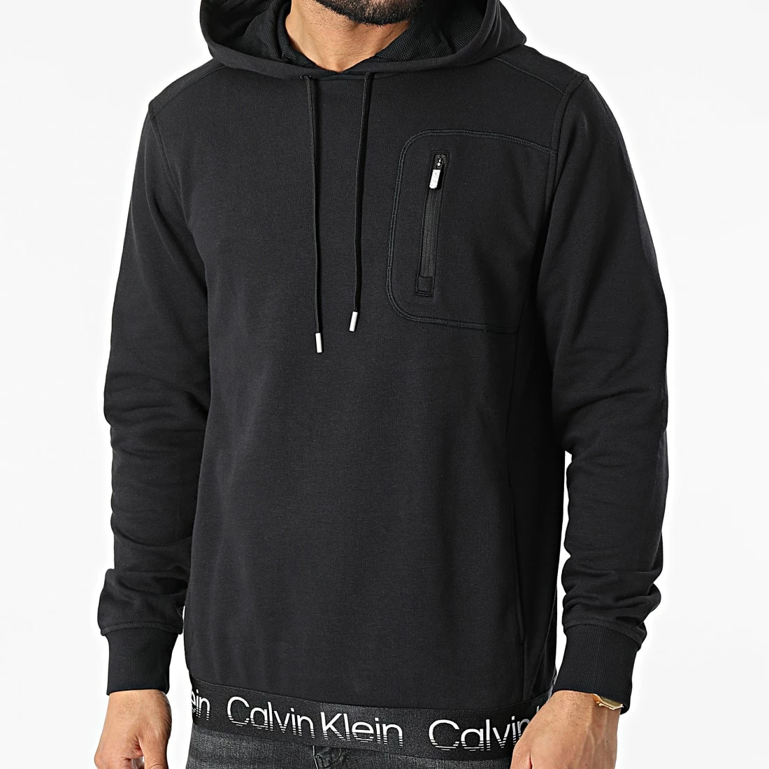 • Sweat capuche à poche poitrine tendance avec visuel Calvin Klein brodé à la taille