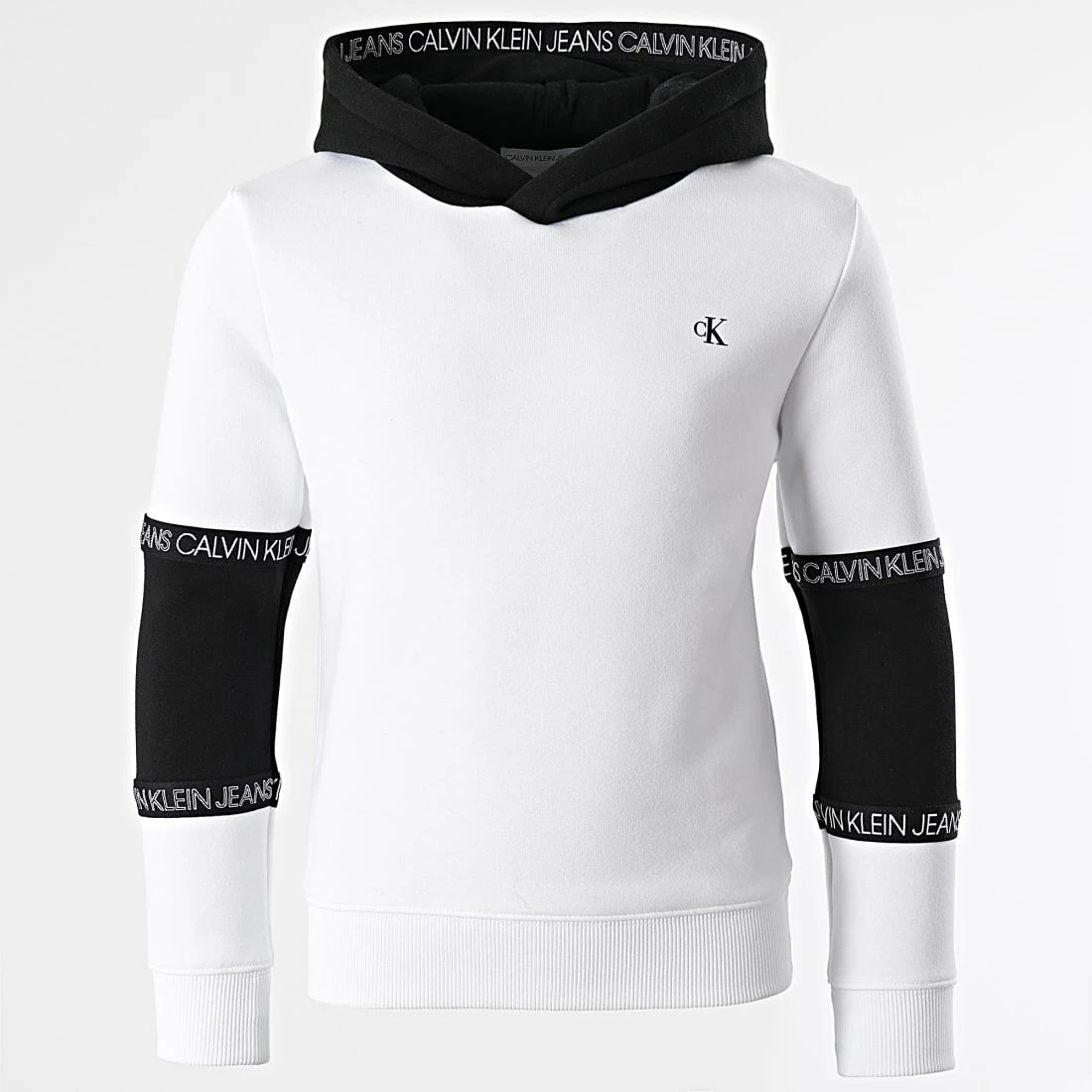• Sweat capuche bicolore imprimé monogramme CK sur la poitrine