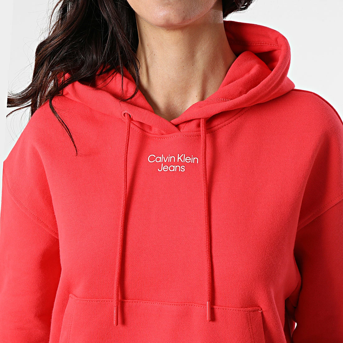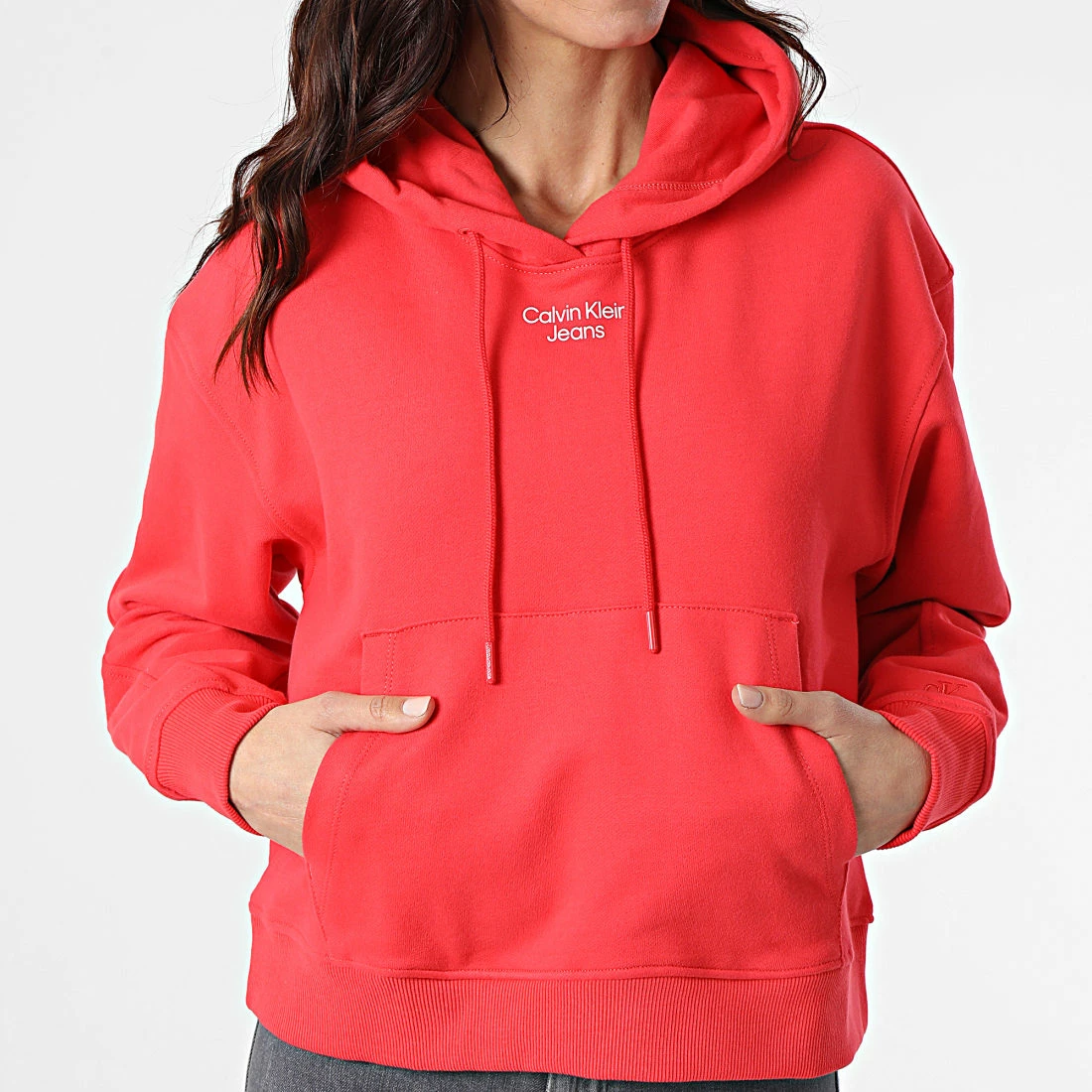 Promo 💯 Sweat Capuche Femme 8048 Rouge de Calvin Klein 🎉