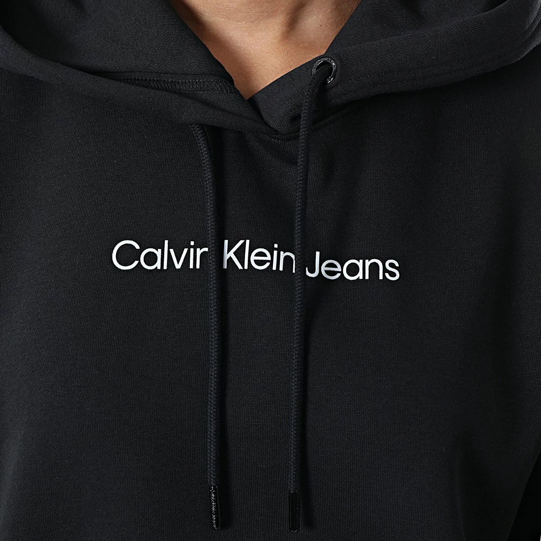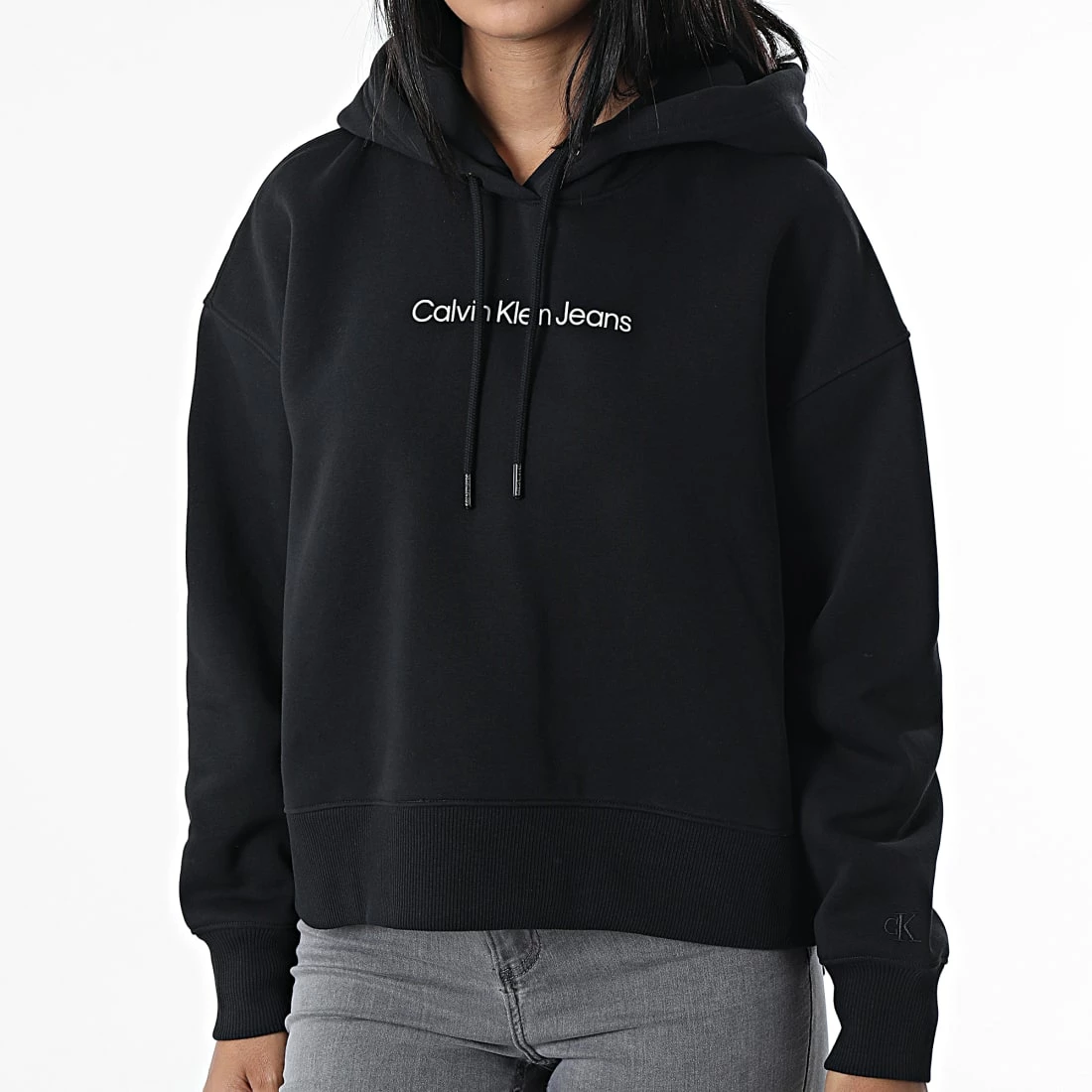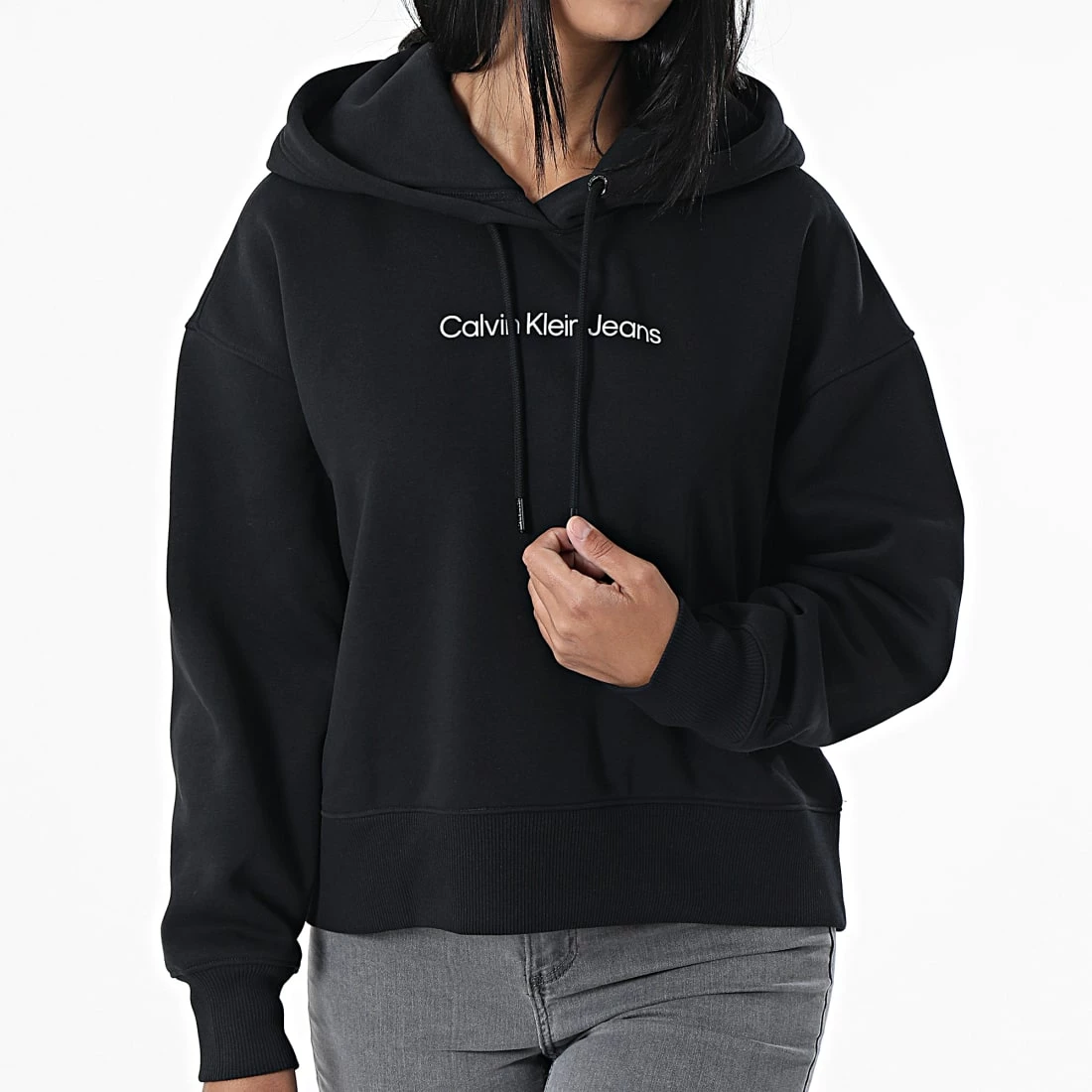Remise 🛒 Sweat Capuche Femme Shrunken Institution 9910 Noir de Calvin Klein 💯