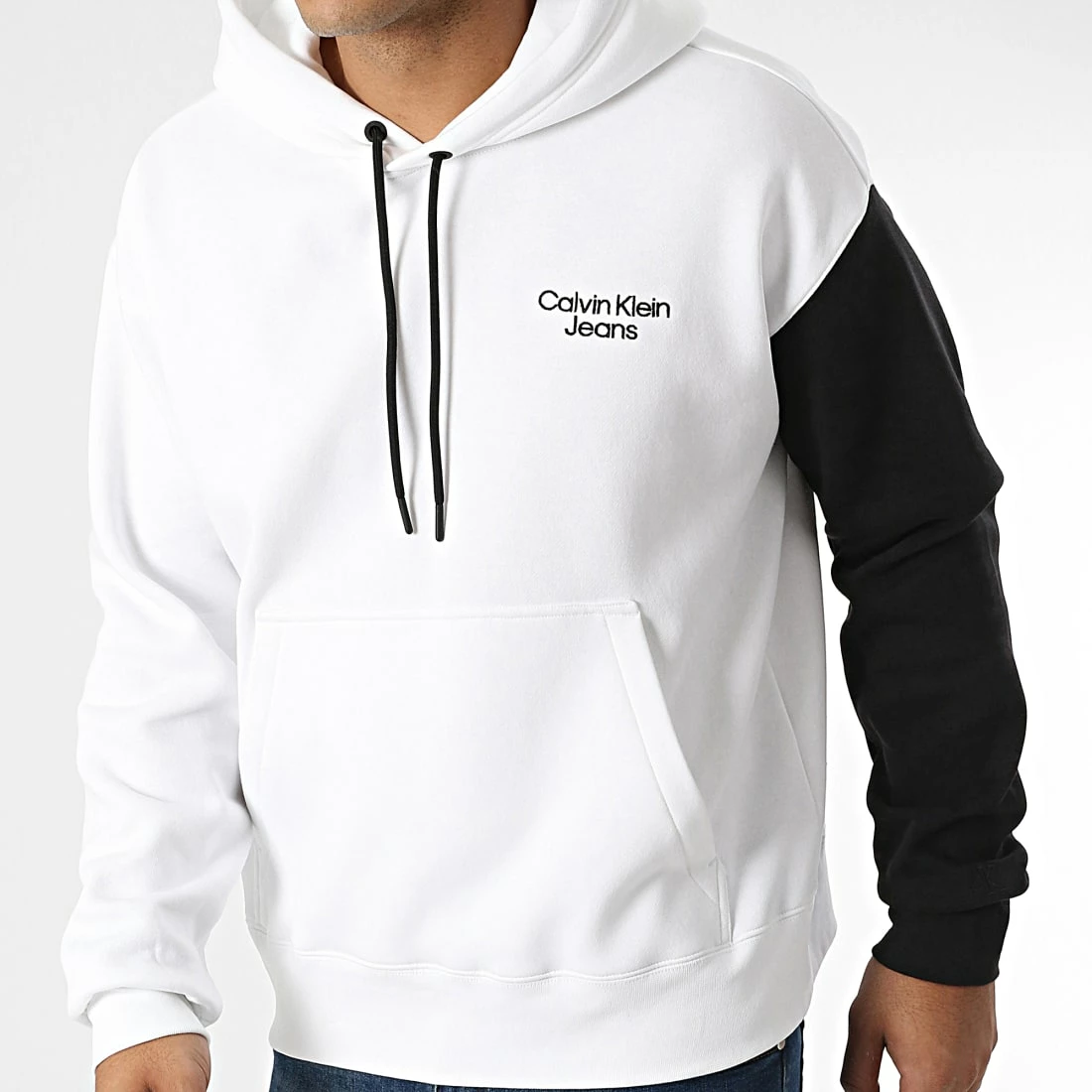 • Sweat capuche tendance bicolore brodé Calvin Klein Jeans sur la poitrine