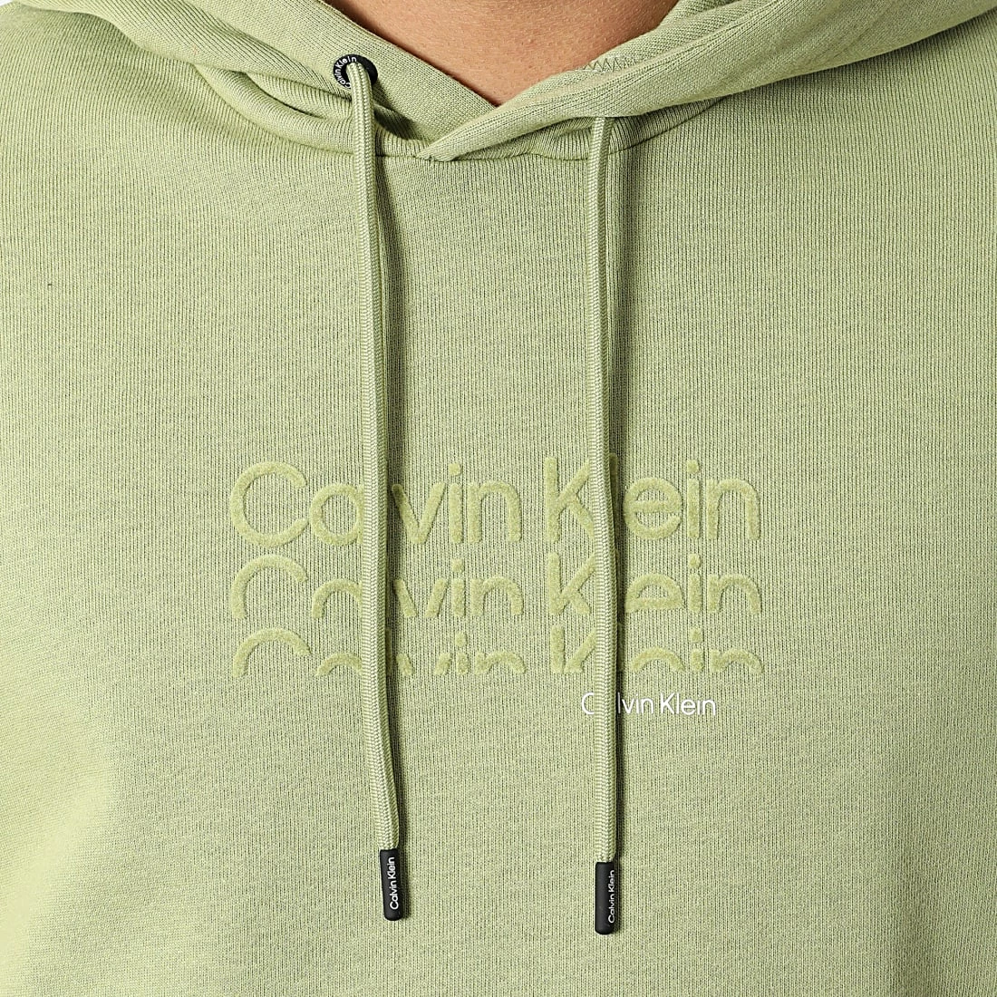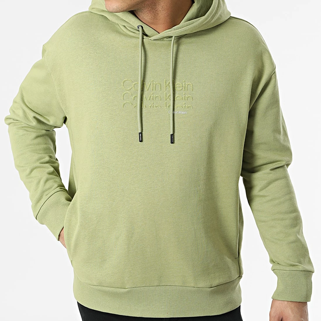 Remise 💯 Sweat Capuche Triple Logo Flock 8929 Vert Kaki Clair de Calvin Klein 👏
