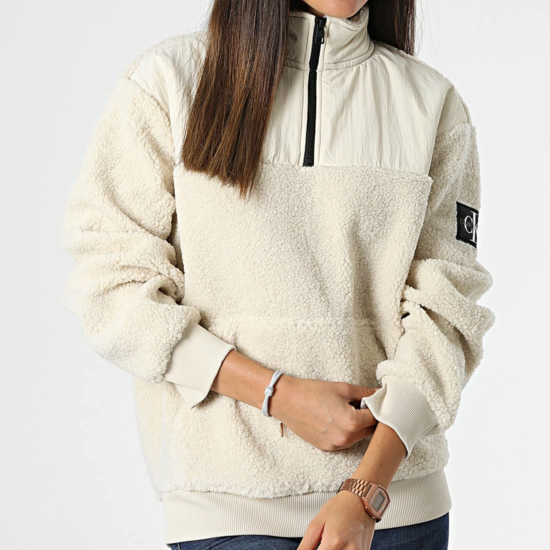 Tout neuf ✨ Sweat Col Zippé Femme Fourrure 2196 Beige de Calvin Klein 🤩