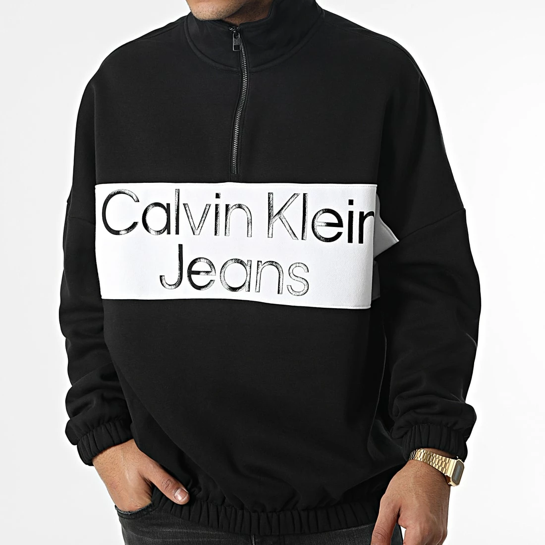 • Sweat large à col zippé tendance avec visuel Calvin Klein Jeans appliqué