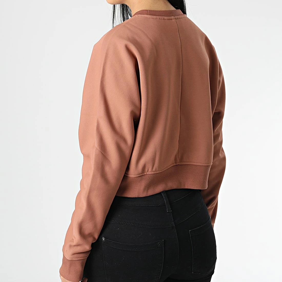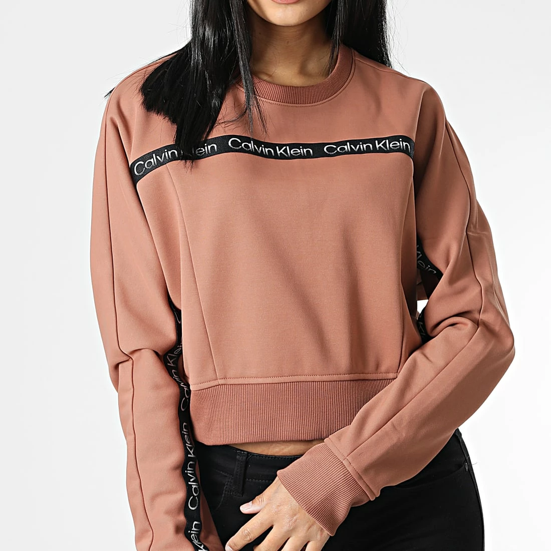 Remise ✔️ Sweat Crewneck A Bandes Femme Crop GWF2W300 Marron de Calvin Klein 😉