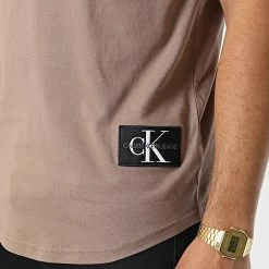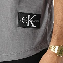 Le moins cher 🧨 Tee 👕 Shirt Oversize Badge Turn Up Sleeve 5319 Gris Anthracite de Calvin Klein ✨