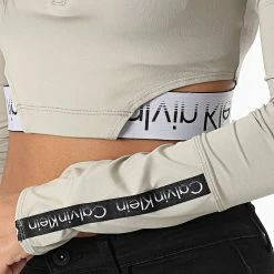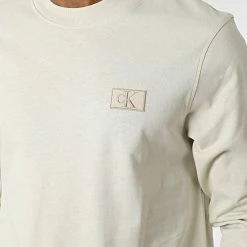 Meilleure vente 🔔 Tee 👚 Shirt Manches Longues Essential Institutional 6884 Blanc de Calvin Klein 😀