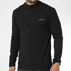 • Tee shirt manches longues en coton stretch imprimé Calvin Klein sur la poitrine