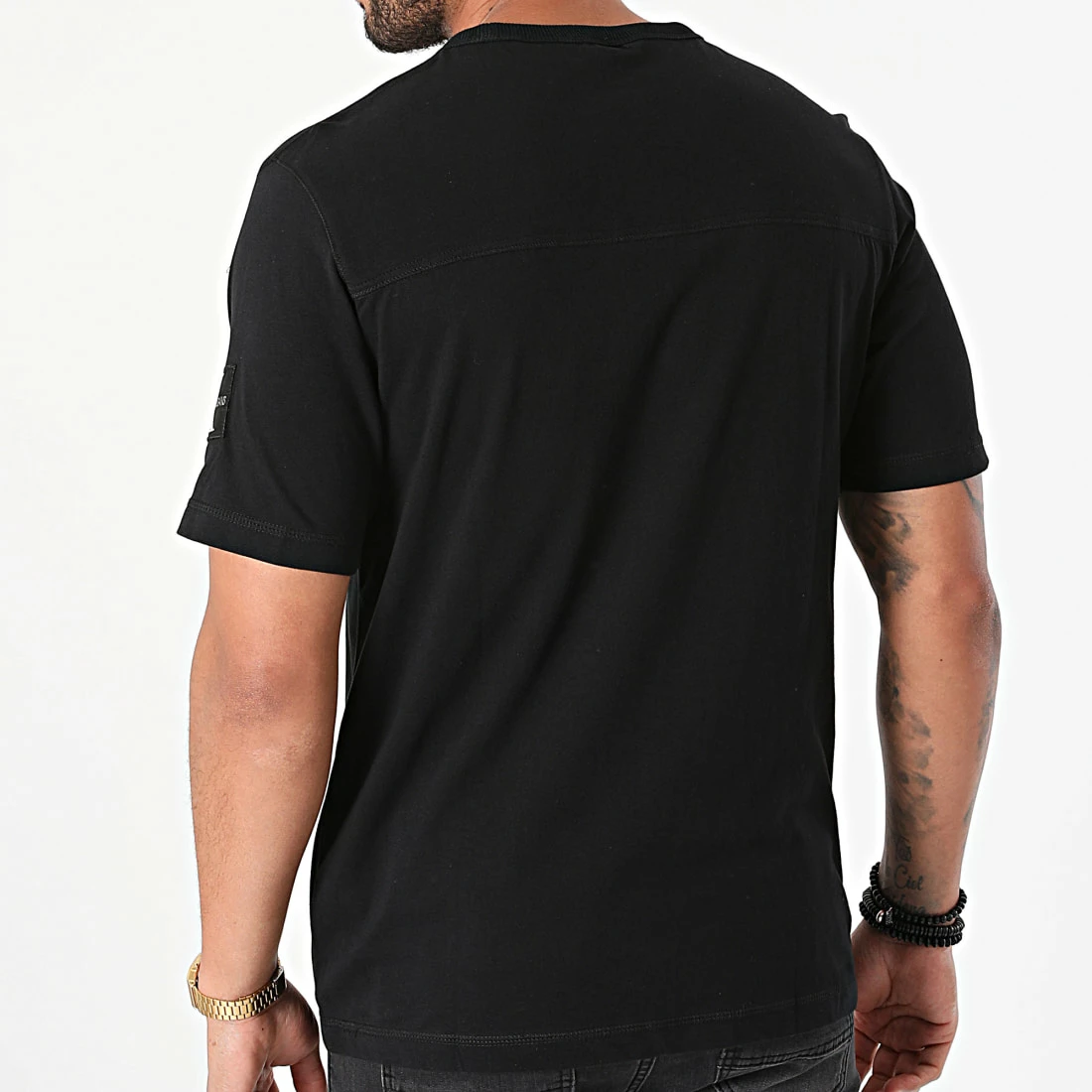 Tout neuf ⭐ Tee 👚 Shirt Monogram Sleeve Badge 4051 Noir de Calvin Klein 🎁