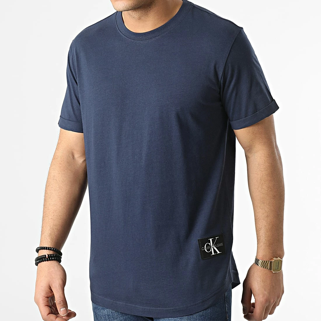 • Tee shirt long en coton brodé patch Calvin Klein Jeans sur la taille