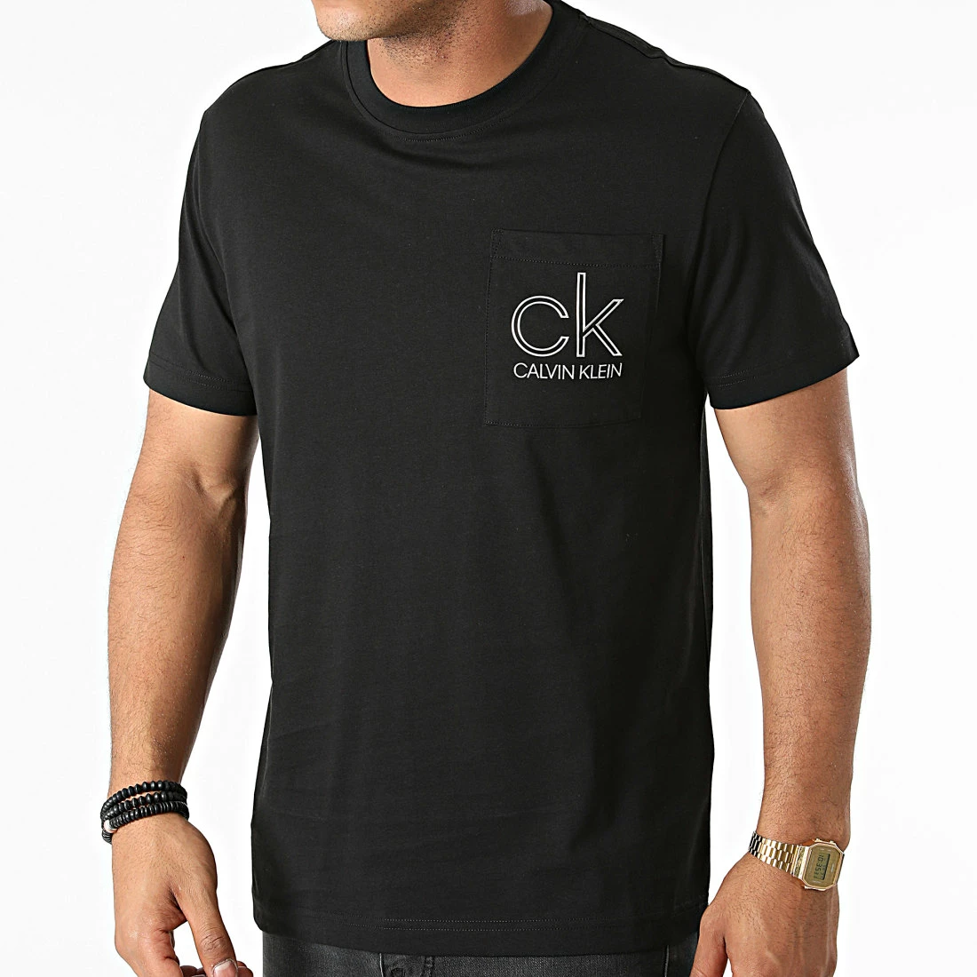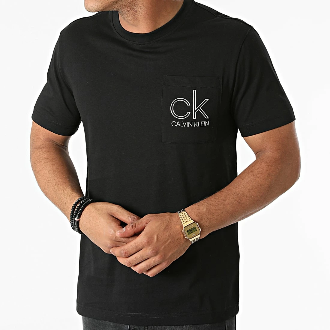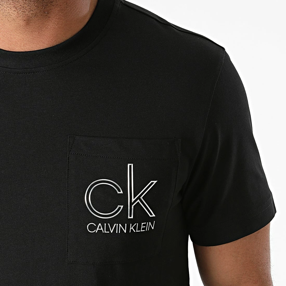 • Tee shirt en coton appliqué visuel Calvin Klein métallisé sur la poche poitrine