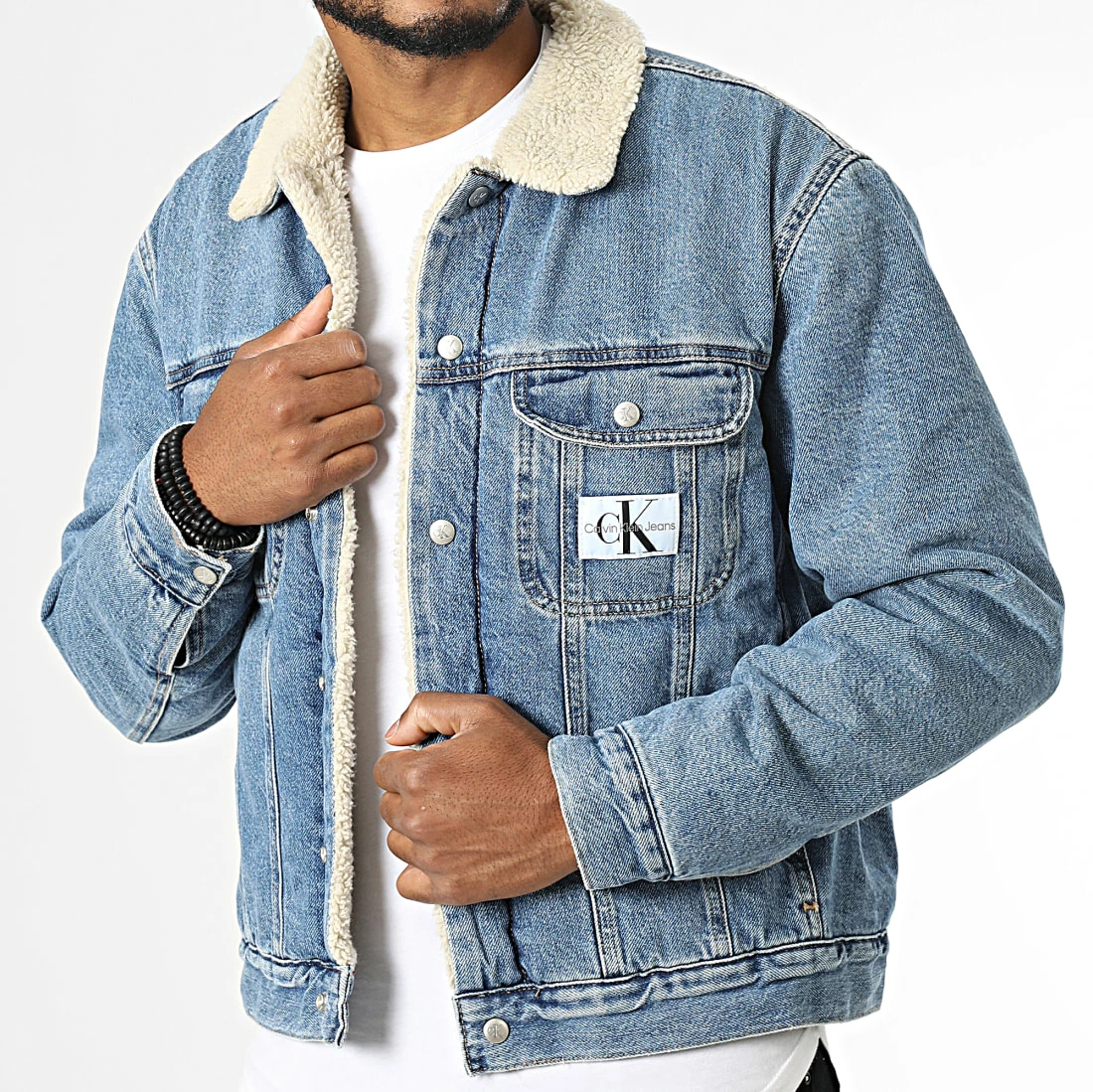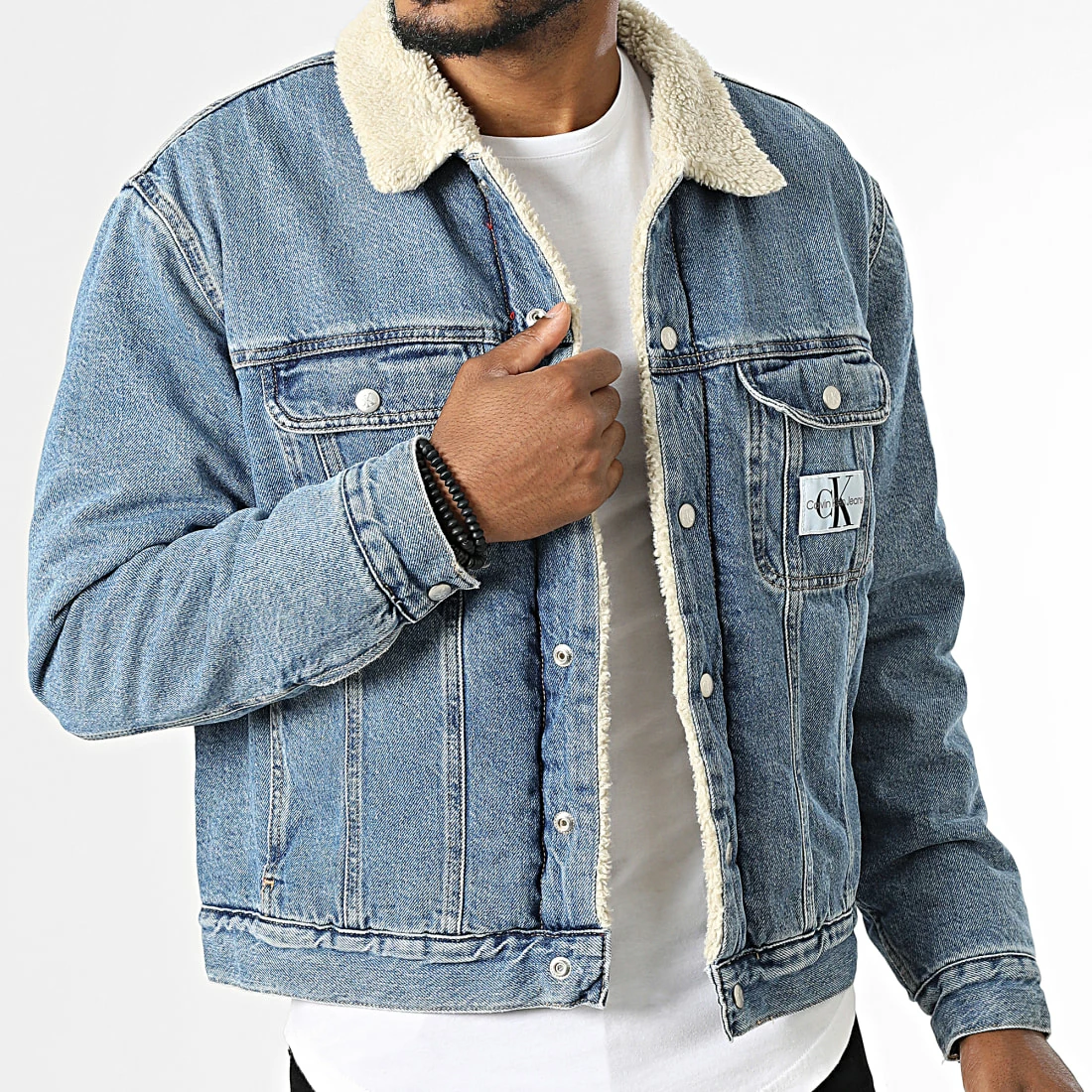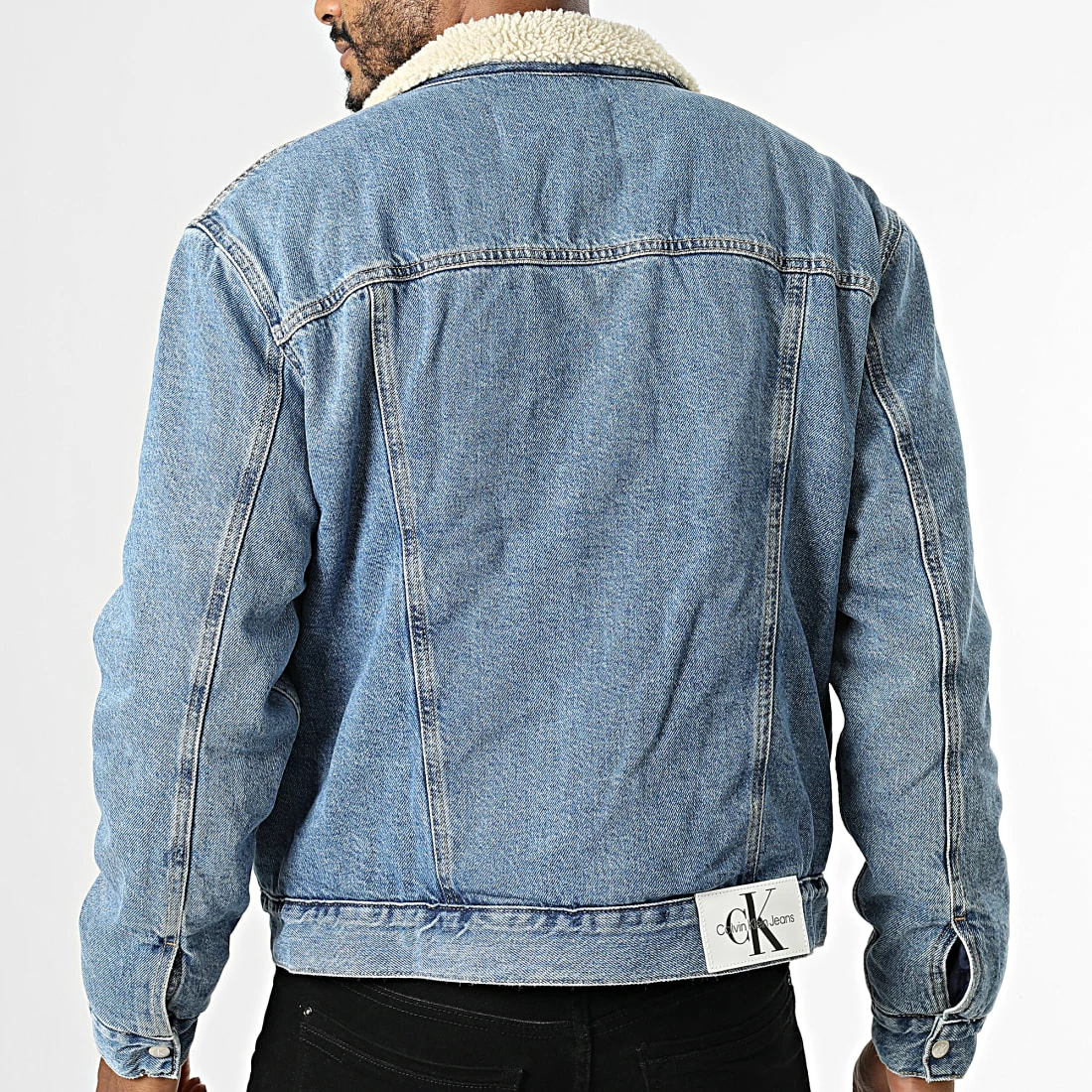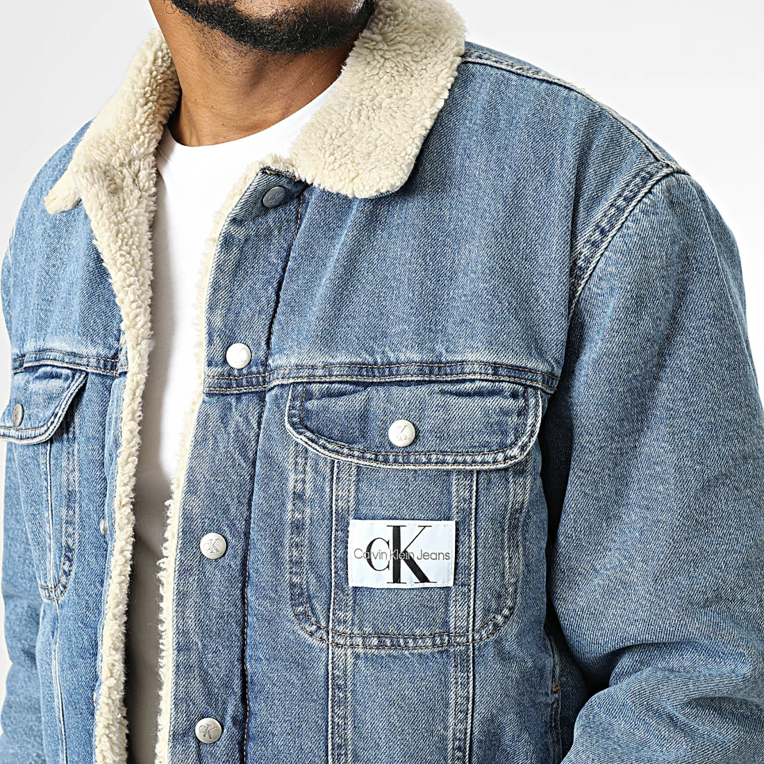 • Veste Jean col sherpa tendance avec patch Calvin Klein Jeans brodé