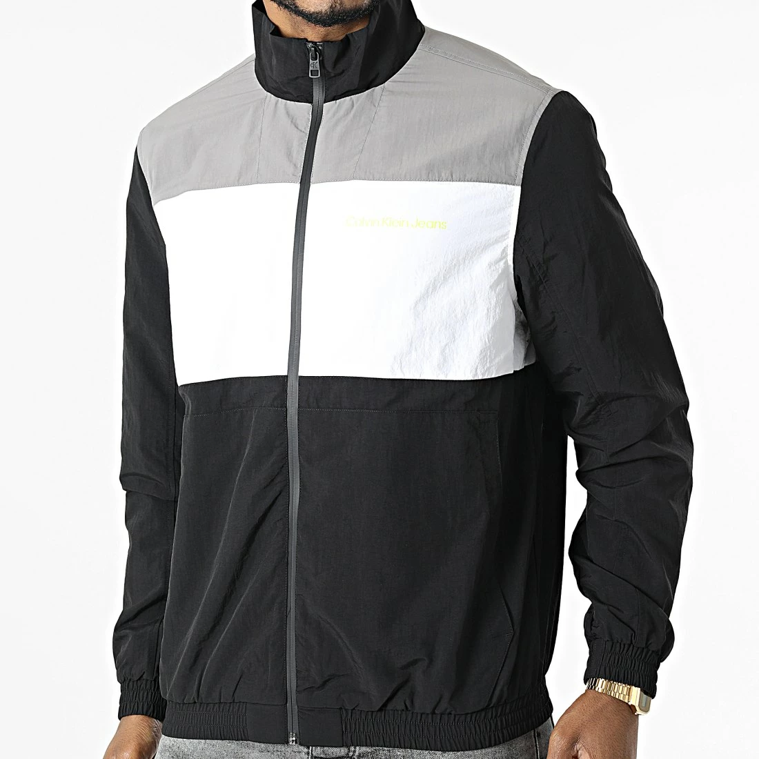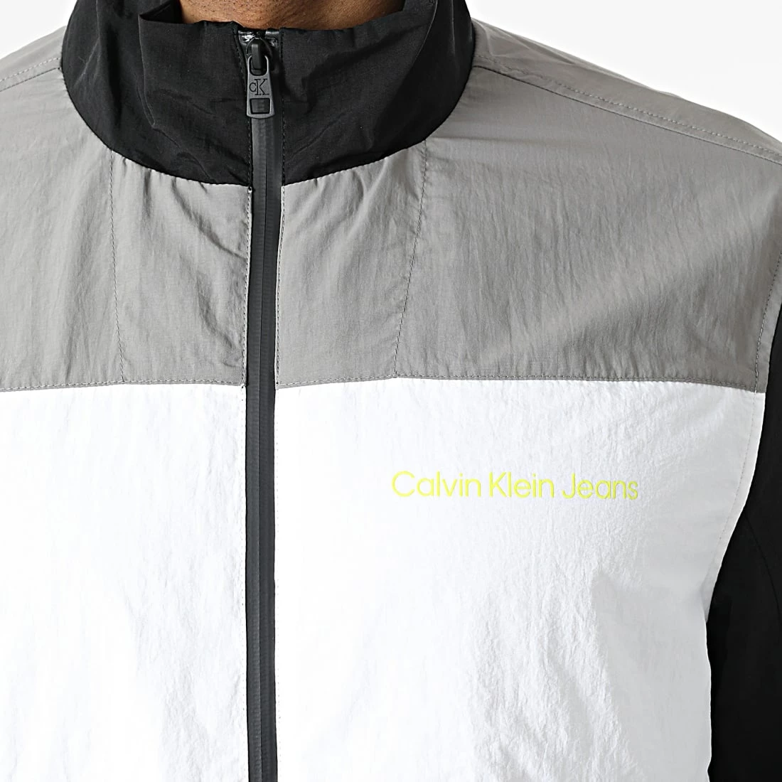 De gros 🔔 Veste Zippée Bold Colorblock 0612 Blanc Gris Noir de Calvin Klein 🧨